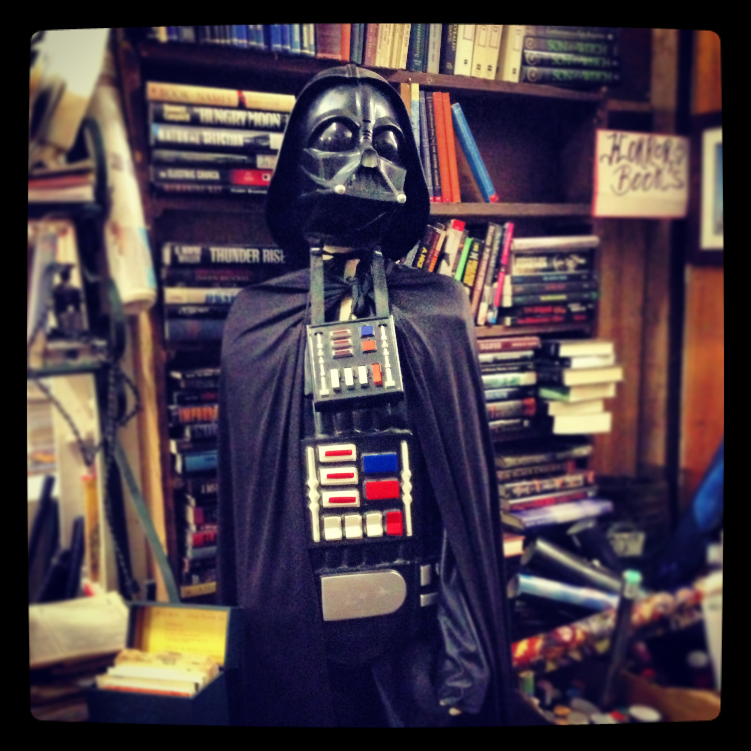 I decided to split my afternoon between bookstores and sight-seeing, and so started my journey at Utah Books &  Magazines, a surprisingly quirky used bookstore downtown. Home to an enormous selection of hardcovers, paperbacks, magazines, piles of VHS tapes and an assortment of bizarre decor (like an anatomy skeleton wearing a Darth Vader costume) Utah B&M doesn’t seem like the kind of place you go when you’re looking for something specific, but rather when you want to get lost in the shelves/piles of material and stumble across something unexpected. And I mean literally stumble.
